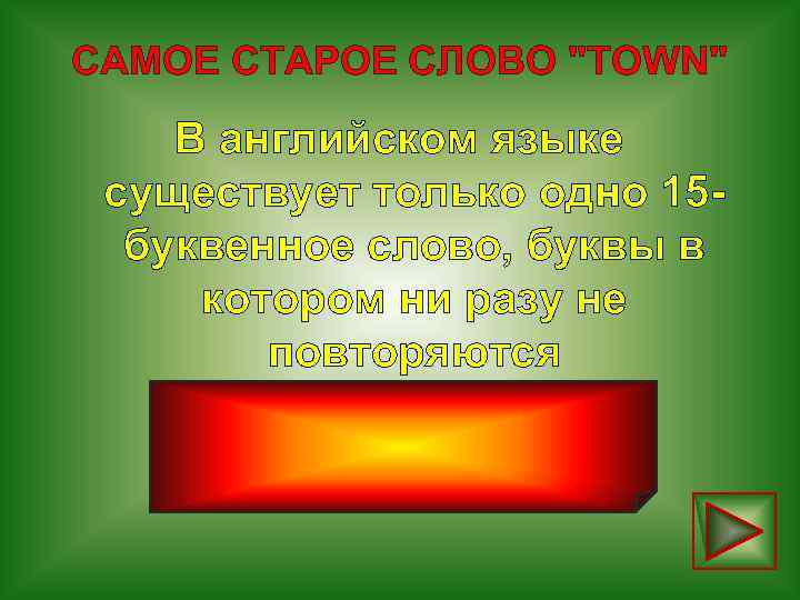 САМОЕ СТАРОЕ СЛОВО "TOWN" В английском языке существует только одно 15 буквенное слово, буквы в котором ни разу не повторяются uncopyrightable