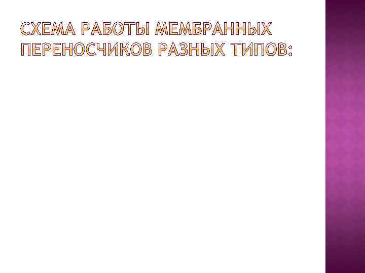 ТРАНСПОРТ С УЧАСТИЕМ ПЕРЕНОСЧИКОВ Транспорт многих гидрофильных веществ (моносахаридов, аминокислот, некоторых ионов и др. )обеспечивают подвижные переносчики. Переносчики в БМ могут работать , используя разные способы перемещения: Миграционный Ротационный Сдвиговый