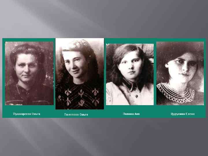 Подпольная комсомольскомолодёжная группа «Юные мстители» Подыма Т. И. первый командир молодёжного подполья передавшая свои полномочия Д. Шервашидзе