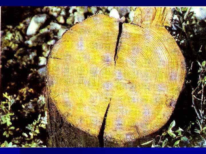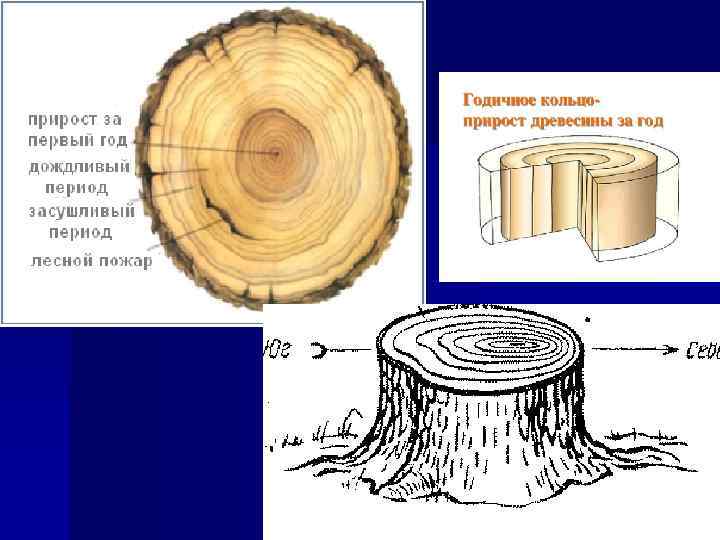 Годичное кольцо прироста Многолетняя активность камбия приводит к формированию слоев прироста проводящих тканей (годичных колец). Камбиальная активность (усилением), зависит от внешних и внутренних факторов, влияющих на величину прироста. При благоприятных условиях образуются крупные, с тонкими оболочками клетки, а при неблагоприятных условиях – мелкие клетки с толстыми оболочками. Вследствие этого в древесине образуются годичные кольца нарастания (к осени просветы клеток почти незаметны, ткань получается очень плотной и образуется темная граница годичной продуктивности камбия). По годичным кольцам можно (даже невооруженным глазом) определить возраст дерева. Каждому кольцу соответствует один год (например, при летней засухе возможны два узких кольца). Ширина колец говорит о климате в данном регионе за несколько лет (возраст дерева).