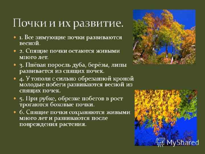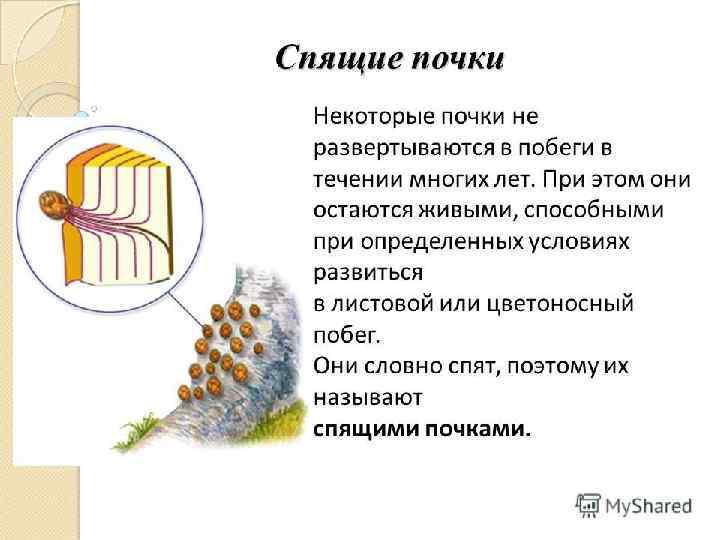 В отличие от спящих придаточные почки возникают в любой части растения из камбия вследствие какого-либо раздражения (ранения, заражение паразитами и др. ) и вызывают появление множества придаточных стеблей (часто называемых в народе «ведьмины метла» ). Пневая поросль чаще развивается з ридаточных очек. и п п Разведение растений черенками и отводками также основано на появлении придаточных почек и корней.