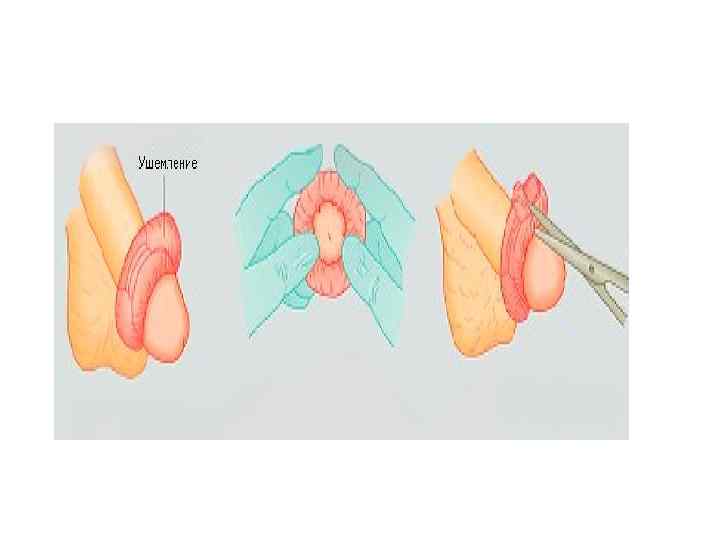 Лечебная тактика • В ближайшие часы после ущемления – консервативное вправление головки penis через ущемляющее кольцо в препуциальный мешок • В случае длительного ущемления и невозможности вправления головки полового члена прибегают к оперативному вмешательству, которое заключается в рассечении ущемляющего кольца. После стихания острого воспалительного процесса производят обрезание крайней плоти