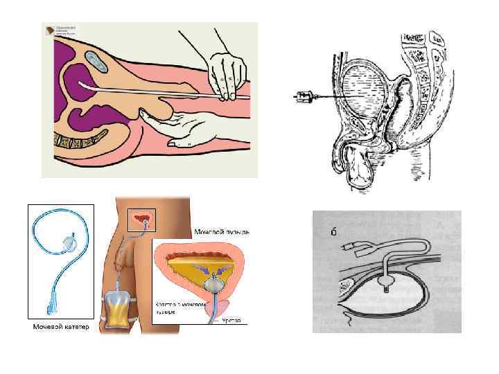 Лечение - Заключается в эвакуации мочи из мочевого пузыря с помощью катетеризации либо оперативного вмешательства (цистостомия) 1. Катетеризация мочевого пузыря – однократная, либо длительное дренирование, вплоть до восстановления мочеиспускания, в сочетании с альфа -адреноблокаторами 2. При отсутствии возможности в ближайшее время ликвидировать острую задержку мочи (травма уретры, крайне тяжелое состояние больного с аденомой простаты, врожденная облитерация уретры и др. ) выполняется либо троакарная, либо эпицистостомия