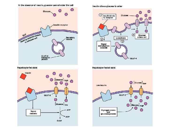 Изменение чувствительности клеток к гормонам • Изменение числа рецепторов • Образование антител к рецепторам • Конкуренция за рецепторы Действие через ядерные рецепторы: стероидные гормоны (глюкокортикоиды, половые стероиды …) Действие через мембранные рецепторы: пептидные гормоны (инсулин, глюкагон …), амины (адреналин, норадреналин…)