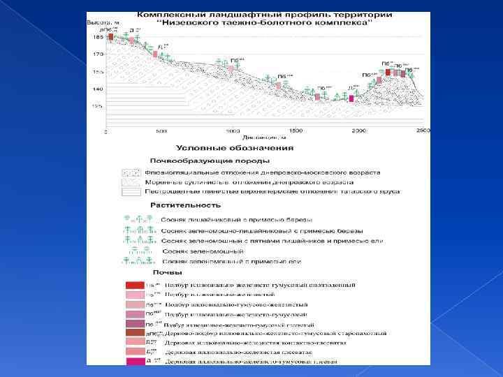 Выводы: В южной тайге среди зональных дерново-подзолистых почв на флювиогляциальных песках с включениями карбонатных пород формируются подбуры благодаря сочетанию и соотношению интенсивности процессов внутрипочвенного выветривания и иллювиально-гумусового оподзоливания. Выделяются подтипы подбуров, что связано с величиной оттока, характером увлажнения и близостью суглинистых подстилающих пород. Однако, это не так отчетливо и контрастно отражается в растительном покрове. Подбурам свойственны кислая и слабокислой реакция до почти нейтральной в подстилающей породе – моренном суглинке. Профиль обогащен несиликатными формамии железа по сравнению с породой. Малое содержание органического вещества – следствие легкого гранулометрического состава и характера растительности. Почвы поймы р. Чепцы представляют собой «классический ряд» аллювиальных почв по Г. В. Добровольскому от Ад до Апг.