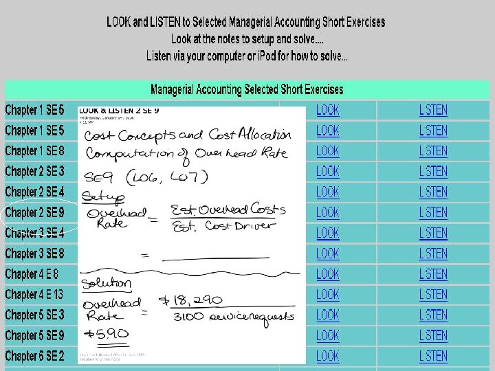 Student Comfort Zone Audio files-podcasting. wav files that students can listen to as they view their text or notes using either a computer, i. Pod, or mp 3 player • Managerial Accounting Chats • Managerial Accounting Look and Listens Video files-videocasting. M 4 V files that students can see/hear using either a computer or video i. Pod Chapter 6 LO 4 SE 6