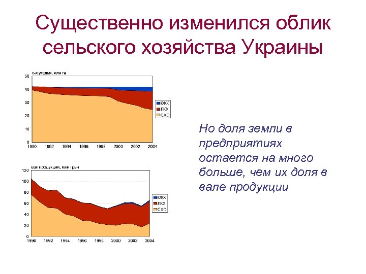 Существенно изменился облик сельского хозяйства Украины Но доля земли в предприятиях остается на много больше, чем их доля в вале продукции