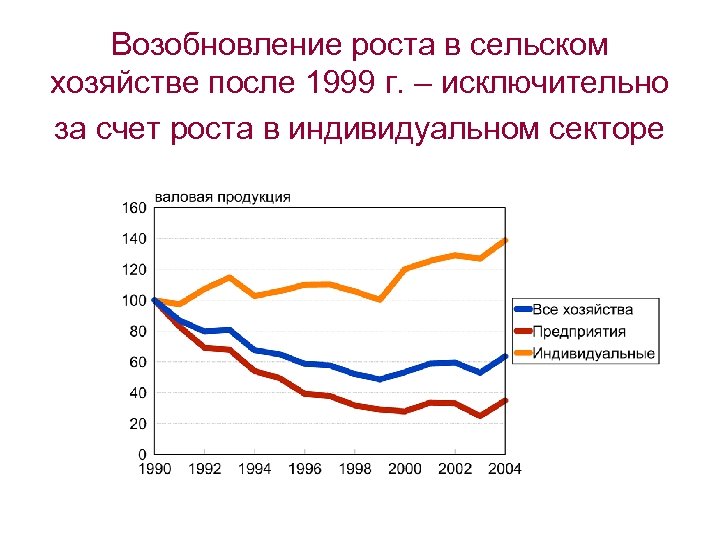 Возобновление роста в сельском хозяйстве после 1999 г. – исключительно за счет роста в индивидуальном секторе
