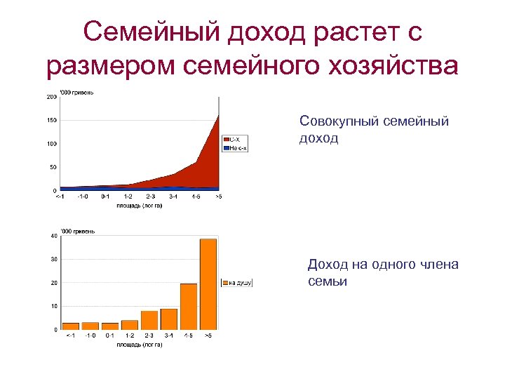 Семейный доход растет с размером семейного хозяйства Совокупный семейный доход Доход на одного члена семьи