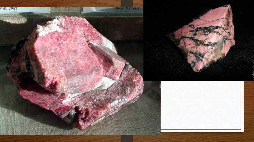 • Вторым камнем, которым гордиться уральский край, является орлец, не встречаемый более нигде в таких огромных количествах и такого высочайшего качества, как в России. Орлец, он же родонит, имеет вишнево-розовую окраску, главное достоинство которого заключается в сочетании различных оттенков этого цвета с темными пятнами и извилистыми жилками. Главным образом, орлец использовался для изготовления чаш, ваз, канделябров. .