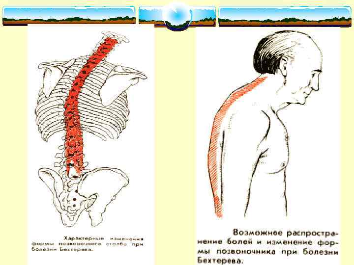 АНКИЛОЗИРУЮЩИЙ СПОНДИЛОАРТРИТ v Хроническое системное заболевание, характеризирующееся воспалительным поражением суставов позвоночника, околопозвоночных тканей и крестцово – подвздошных сочленений с анкилозированием межпозвоночных суставов и развитием кальцификации спинальных связок.