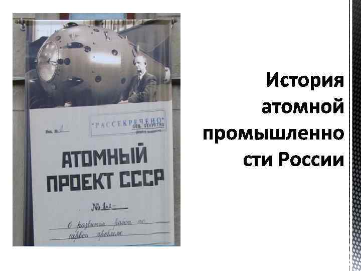 § В 40 -е годы XX века история советской атомной отрасли получила развитие за счет реализации военного «атомного проекта» . 28 сентября 1942 года было подписано секретное постановление Государственного комитета обороны (ГКО) № 2352 сс «Об организации работ по урану» . В нем Академии наук СССР предписывалось «возобновить работы по исследованию осуществимости использования атомной энергии путем расщепления ядра урана и представить к 1 апреля 1943 года доклад о возможности создания урановой бомбы или уранового топлива» . 12 апреля 1943 года была образована Лаборатория измерительных приборов № 2 Академии наук СССР (ныне — РНЦ «Курчатовский институт» ). Позже ее перевели в Москву и назначили профессора И. В. Курчатова научным руководителем работ по урану.