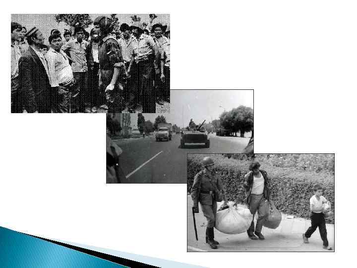 ТУРКИ УЗБЕКИ ВЛАСТИ И ВОЙСКА • Безусловно, жертвами насилия стали люди, идентифицируемые и идентифицирующие себя как турки (несколько позднее - месхетинские турки). • Турки выступали в двух разных качествах - они были жертвами массового насилия и пострадали как люди, принудительно переселенные из своих домов и вообще из Узбекистана. • Практически во всех публикациях и во всех свидетельствах очевидцев речь идет о том, что подавляющее большинство активистов было представлено молодыми людьми. Называют разные возрастные диапазоны, но все они лежат в пределах 15 -30 лет. В сельской местности в погромах участвовали и люди более старшего возраста • Сообщения о беспорядках не содержат упоминаний о каких-либо внятных претензиях к туркам как таковым. Но практически все сообщения описывают не только действия погромщиков, но и настроения окружающего населения как стремление защититься от агрессии. То есть турок воспринимали не как жертвы, а как нападающую сторону. • По сообщению ряда источников, еще одним ключевым понятием, использовавшимся во время событий для характеристики мотивов нападавших, было (наряду с "защитой") было слово "месть". • Представители следственной группы очень определенно говорили о том, что имеющиеся у них материалы не позволяют утверждать, что участники беспорядков имели сколько-нибудь определенную программу действий и выдвигали бы какие-нибудь четкие лозунги. Публикации в прессе и рассказы очевидцев убеждают в том же. • Власть не была едина: в событиях принимали участие различные структуры, представлявшие разные властные эшелоны. Многие структуры другу не подчинялись, и возникали разные центры силы • Во время и после событий в прессе было много упоминаний о том, что местные власти, а также милиция и войска вели себя пассивно и реагировали на происходящее с опозданием. "Первые дни милиция вела себя растерянно". "Когда начались события, маргиланская милиция скрылась". "Милиция бездействовала". Во многих публикациях сообщалось о том, что первые подразделения Внутренних Войск прибыли в область не только без оружия, но и без щитов с касками. В первые дни военные не имели приказа о наступательных действиях и приказа о применении оружия. Есть немало нелицеприятных упоминаний о действиях областного и республиканского начальства.