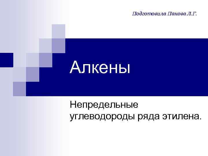 Подготовила Панова Л. Г. Алкены Непредельные углеводороды ряда этилена.