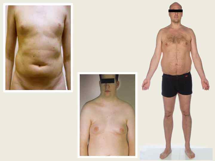 Эндокринные нарушения § Абдоминальное ожирение § Гинекомастия § Нарушение толерантности к углеводам, развитие СД § Слабый рост волос на лице, туловище, конечностях Калиниченко С. Ю. , Мельниченко Г. А. , Гусакова Д. А. - «Синдром Клайнфальтера» , 2007 г.