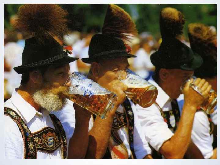 Германия - страна любителей пива и сосисок. Также, Германию считают самой стабильной страной Европы! Многие бы назвали Германию студенческой страной. Она участвует во многих программах по обмену студентами. Отсюда следует, что Германия обладает высококлассными специалистами, которые стимулирует экономику страны. Октоберфест. Праздник Октоберфест открывается для Вас и ваших друзей в Мюнхене. Это праздник пива, сочных булочек, жареных курочек, парков развлечений и хорошего настроения, который привлекает каждый год около 6 млн. посетителей, приезжающих в Мюнхен со всех частей света. Октоберфест проводится на «Лугу Терезы» , в центре Мюнхена, неподалеку от Главного вокзала в середине сентября - начале октября каждого года.