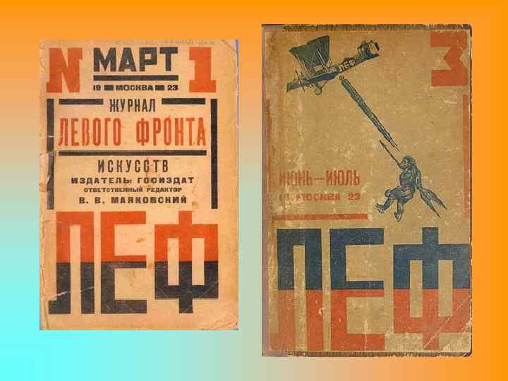 ЛЕФ (Левый фронт искусств) - творческое объединение, существовало в 1922— 1929 годах в Москве, Одессе и других городах. ИСТОРИЯ Основано в конце 1922 года в Москве. Ядро ЛЕФа — üВ. В. Маяковский üН. Н. Асеев üО. М. Брик üС. М. Третьяков üБ. А. Кушнер üБ. И. Арватов üН. Ф. Чужак. Органы Лефа — журналы «ЛЕФ» (1923— 1925) и «Новый ЛЕФ» (1927— 1928). В деятельности ЛЕФа также принимали участие литераторы: Б. Л. Пастернак, А. Е. Кручёных, П. В. Незнамов, С. И. Кирсанов, В. В. Каменский, И. Г. Терентьев, М. Ю. Левидов, В. Б. Шкловский, Л. А. Кассиль и др. ; художники: А. М. Родченко, В. Ф. Степанова, Л. С. Попова, В. Е. Татлин и др. Сотрудничали с Лефом кинематографисты: С. М. Эйзенштейн, Л. В. Кулешов, Г. М. Козинцев, Л. З. Трауберг, Дзига Вертов, С. И. Юткевич, Э. И. Шуб и др. , архитекторы: братья Веснины, А. К. Буров. В 1925 году архитекторами-членами ЛЕФа было основано Объединение современных архитекторов. Основные принципы деятельности ЛЕФа — литература факта, производственное искусство, социальный заказ.