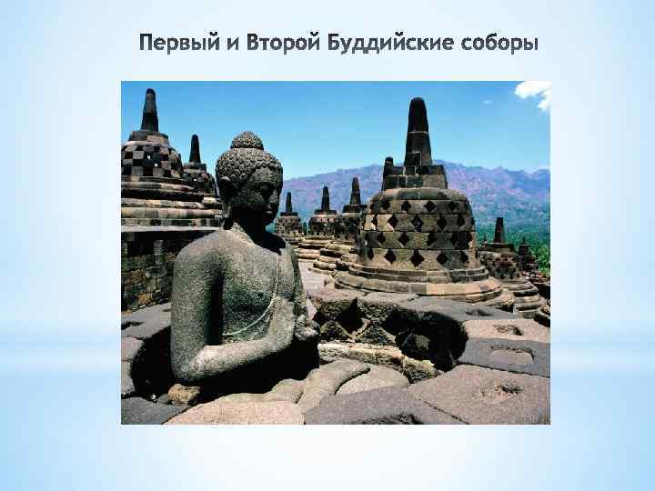 Царь Ашока Распространение буддизма получило новый сильнейший импульс, когда последователем этой религии стал царь из династии Маурья (V—II вв. до н. э. ) Ашока. По преданию, Ашока (273— 232 гг. до н. э. ) в начале своего царствования был необузданным и свирепым правителем. Яшас (по другим источникам, Упагупта), наделённый титулом высшей святости — архата (санскр. «достойный уважения» ), обратил царя в буддизм и стал его наставником. Чтобы искупить прежние злодеяния, Ашока украсил землю множеством ступ, построил немало монастырей и культовых объектов. В это время значительно увеличилось число монахов и мирских последователей религии. Основной чертой политики Ашоки в буддийский период его правления стала веротерпимость. Он даровал рощи и пещеры представителям различных религиозных традиций. При этом царь заботился о влиянии буддизма. Именно буддизм с его концепцией чакравартина — идеального правителя, воплощающего совершенные светские и духовные добродетели, стал идеологической основой централизованного курса в многонациональной империи.