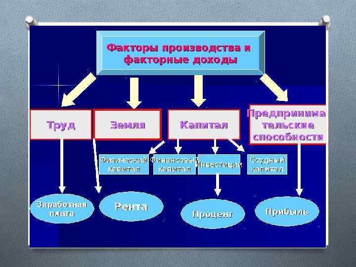 Факторы производства 3. ЗЕМЛЯ – природные ресурсы производства (участки, полезные ископаемые, реки…) Рента – доход того, кто владеет землей