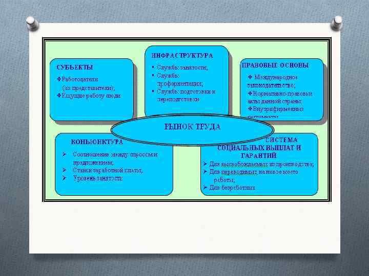 Занятость и безработица Рынок труда – общественные механизмы, которые дают возможность одним людям найти работу, а другим нанять работников O Занятость – трудовая деятельность трудоспособных граждан O Безработица – положение в экономике, при котором часть способных трудиться не могут найти работу