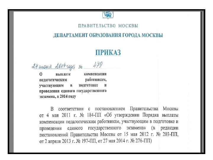 • П. 16 В целях информирования граждан о порядке проведения ЕГЭ на официальных сайтах публикуется следующая информация: - "о сроках проведения ГИА - не позднее, чем за два месяца до начала экзаменов; - о сроках, местах и порядке подачи и рассмотрения апелляций - не позднее, чем за месяц до начала экзаменов; - о сроках, местах и порядке информирования о результатах ГИА - не позднее, чем за месяц до начала экзаменов. • П. 27 абзац второй исключить. (ГИА по обязательным предметам начинается не ранее 25 мая, по остальным предметам - не ранее 20 апреля текущего года).
