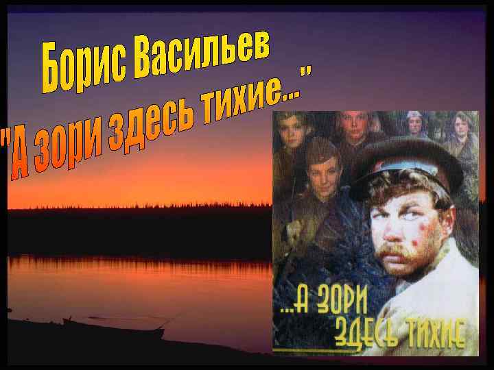 Как вы понимаете название повести? «А зори здесь тихие…» – название оглушает, словно внезапная тишина после ляется полной противоположностью реальностям войны и событиям самой повести. взрывов. Оно является полной противоположностью реальностям войны и событиям самой повести. • Сотнями тысяч жизней таких вот девчонок и мальчишек было заплачено за наши «тихие зори» .