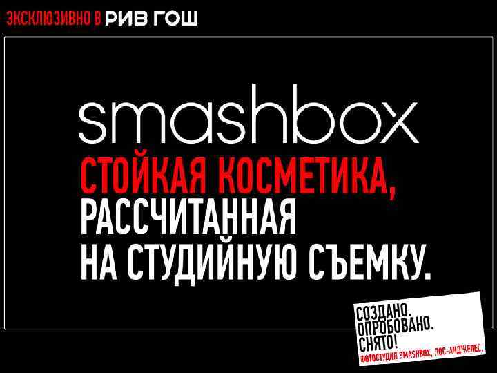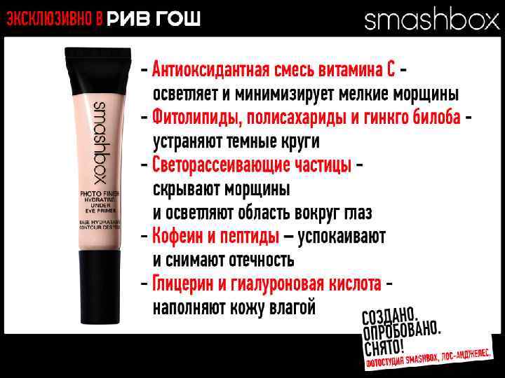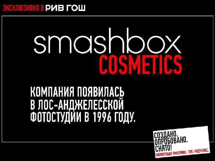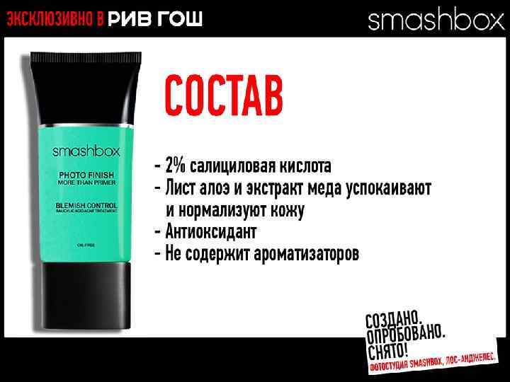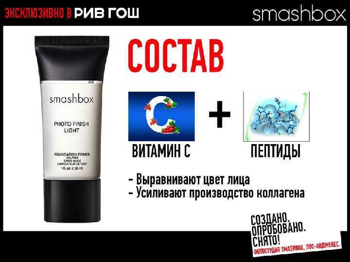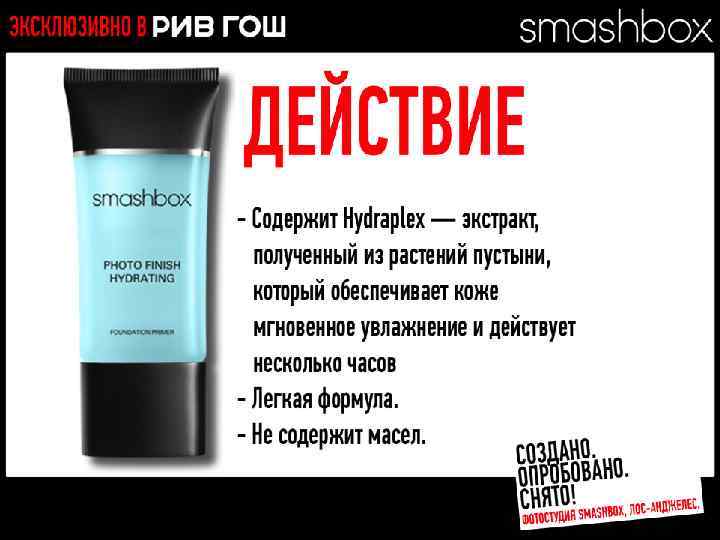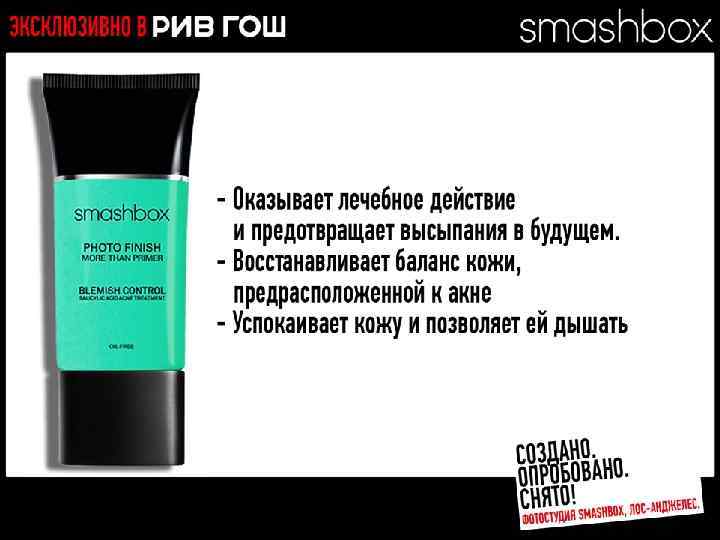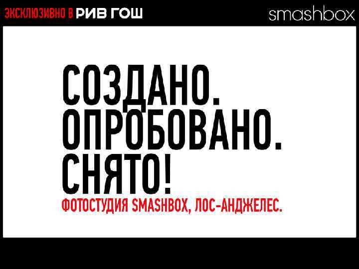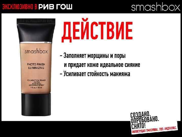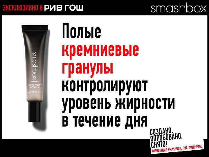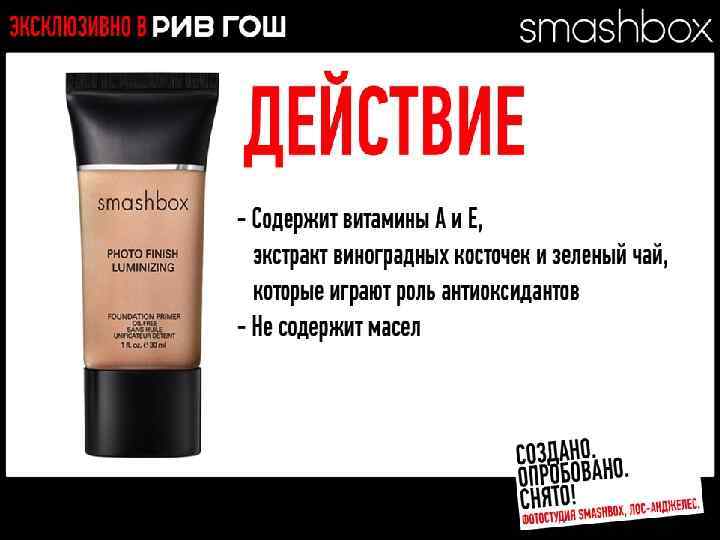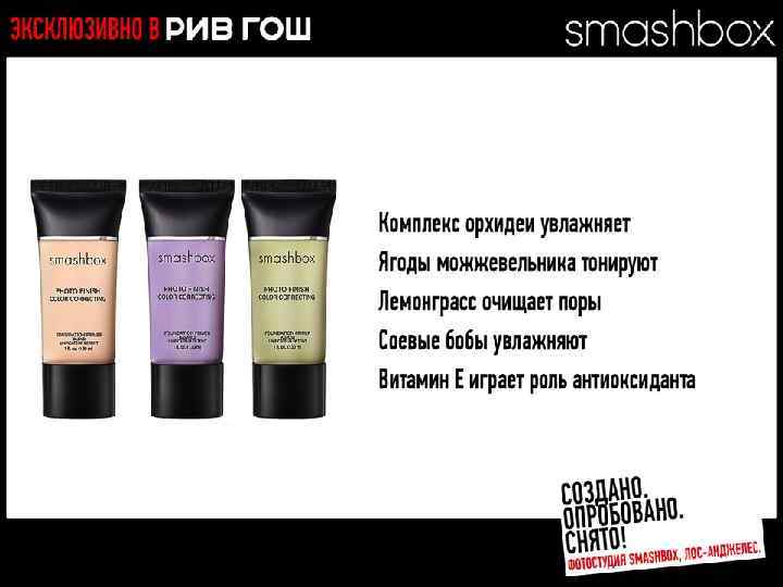 МНОГОФУНКЦИОНАЛЬНЫЕ РЕВОЛЮЦИОННЫЕ ПРОДУКТЫ Разработано. Испытано. Снято. В SMASHBOX STUDIOS (ЛОС-АНДЖЕЛЕС)
