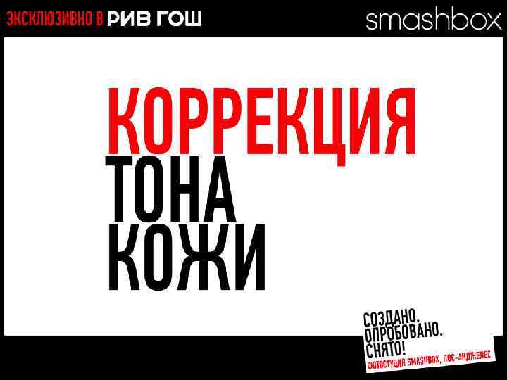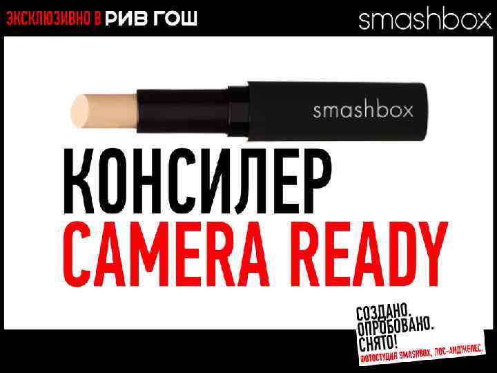 МНОГОФУНКЦИОНАЛЬНЫЕ РЕВОЛЮЦИОННЫЕ ПРОДУКТЫ CC КРЕМ CAMERA READY SPF 30 КОРРЕКЦИЯ ТЕМНЫХ КРУГОВ ДЕЙСТВИЕ • • • Готовит Корректирует Защищает Увлажняет Маскирует темные круги и следы акне Разработано. Испытано. Снято. В SMASHBOX STUDIOS (ЛОС-АНДЖЕЛЕС)