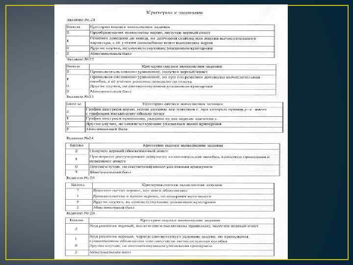 Техническое • Работа с бланком записи решений • Временное распределение выполнения работы (часы) • Использование справочного материала при выполнении работы