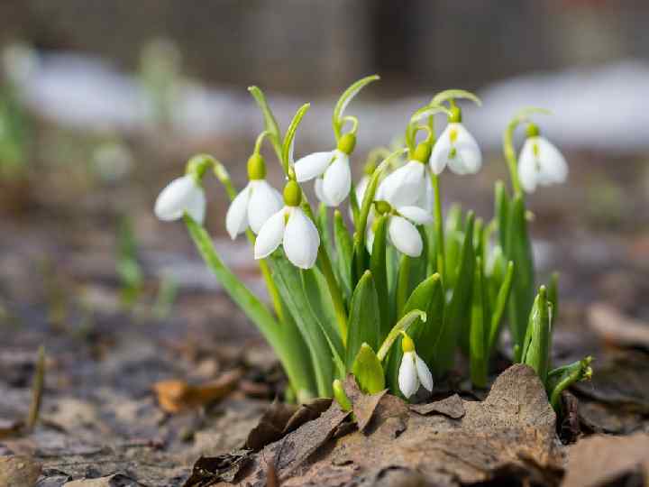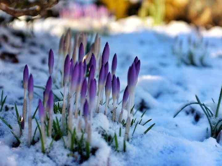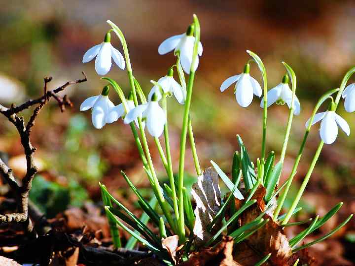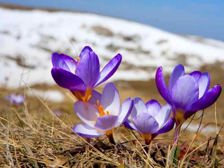 Ранней весной, лишь только начинает таять снег, появляются первые цветы. Их так и называют – первоцветы или подснежники.