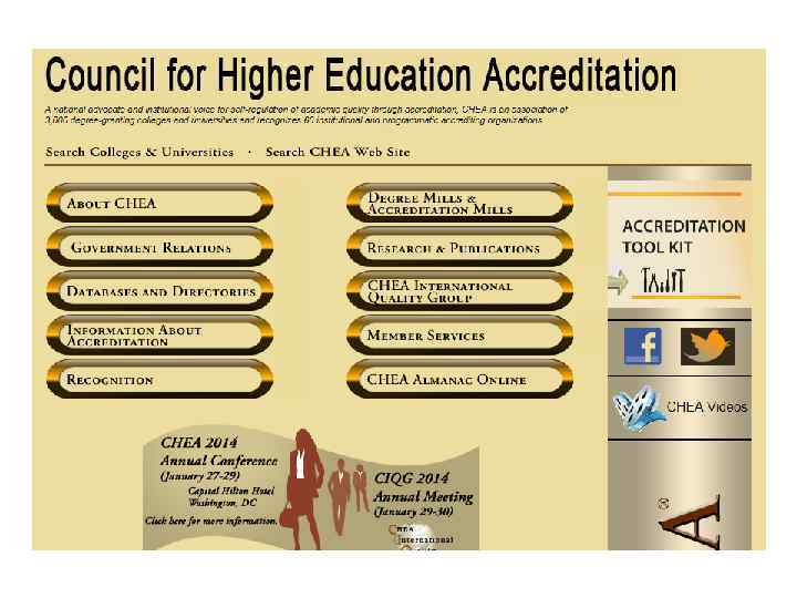 US Department of Education (USDE) • США не имеют Федерального Министерства образования или иного центрального органа власти, осуществляющего контроль над учреждениями высшего образования • USDE Признает агентства штатов • USDE Осуществляет надзор за профессионально – техническим образованием и образованием медицинских сестер • Признаваемые агентства должны отвечать набору требований USDE и CHEA • Агентства могут вести аккредитацию без признания Департаментом