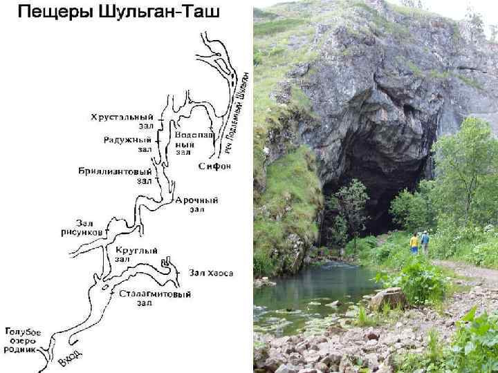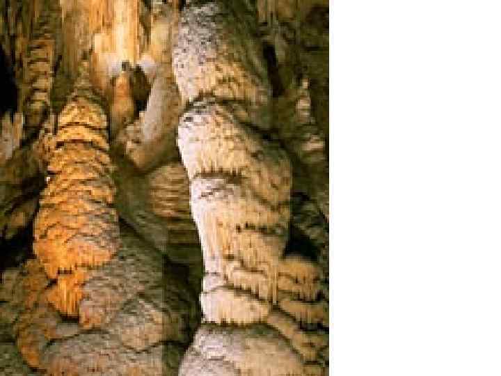 • Карстовые пещеры • образуются под действием подземных вод • в результате расширения трещин в карстующихся породах • Кунгурская пещера на западном склоне Урала имеет в длину 2, 5 км, Мамонтовая пещера в США - 48 км, а с боковыми ответвлениями — до 250 км.