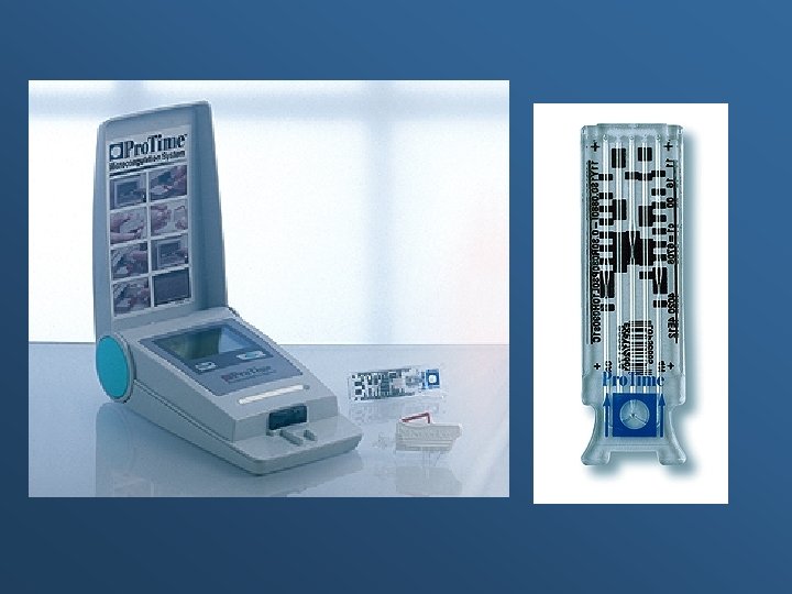 Esempio di coagulometro portatile per la determinazione dell’ACT ØTest: ACT , a. PTT e PT Un coagulometro POC è un dispositivo in grado di valutare in tempi rapidi e direttamente al “letto del malato” il grado di anticoagulazione del paziente rilevando la formazione del coagulo Il vero sito di reazione è la cartuccia contenente il reattivo appropriato per il test che si vuole effettuare a cui viene aggiunto direttamente il sangue)