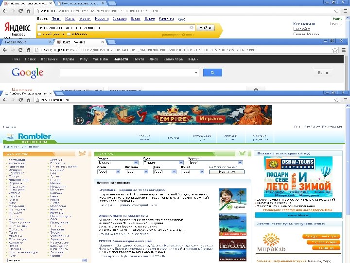 3. Использование информационнопоисковых систем Поиск общего назначения По ключевым По разделам словам тематических указателей Специальный поиск Поиск адресов электронной почты по имени человека, лекарств www. yandex. ru Russia on the http: //www. whowhere. com/ www. whowhere. com www. rambler. ru Net www. ru