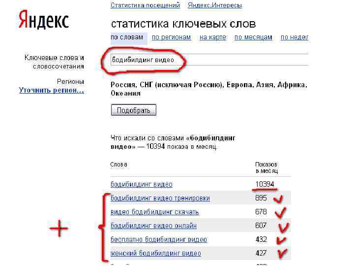 • Используйте «-» , чтобы исключить нежелательные слова при подборе запроса. • Применяйте «+» перед союзами и предлогами для их принудительного учета в запросах. • Знак «!» перед словом зафиксирует введенную форму написания слова и будет искать только ее. • Кавычки «» позволят получить спрос по конкретному словосочетанию.