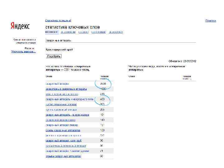• Изучить ключевые слова в кодах на сайтах конкурентов • Использовать сайты по подбору ключевых слов – Статистика ключевых слов от Яндекса http: //wordstat. yandex. ru/ – Google Adwords https: //adwords. google. com/o/Targeting/Explorer? __c=7081234371& __u=4684049091&__o=kt&idea. Request. Type=KEYWORD_IDEAS