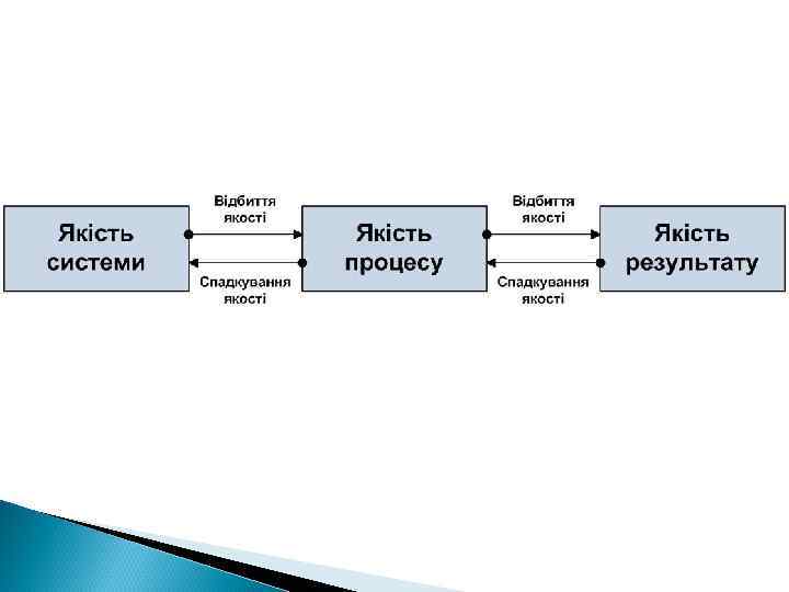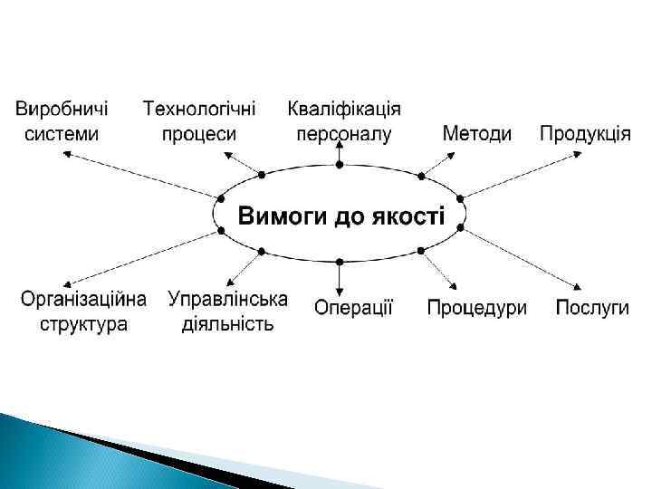Вище керівництво організації повинне забезпечувати, щоб цілі у сфері якості, включаючи і ті, які необхідні для виконання вимог до продукції, були встановлені у відповідних підрозділах і на відповідних рівнях. Цілі у сфері якості повинні бути вимірюваними і узгодженими з політикою в сфері якості (ISO 9001, п. 5. 4. 1).