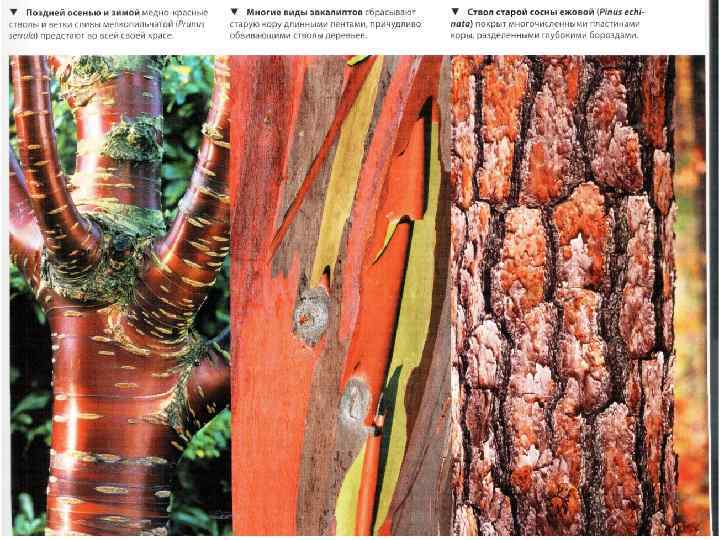 Корка Защищает дерево от перегрева, испарения воды, вымерзания, солнечных ожогов, повреждения вредителями. Периферические слои корки опадают, и вместе с ними растение освобождается от накопившихся с течением времени вредных продуктов метаболизма Береза бумажная Земляничник Мензиса