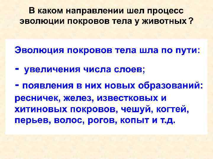 Проблемный вопрос: В каком направлении шла эволюция покровов тела у животных?