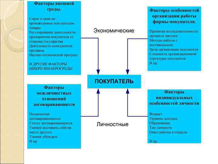 Модель факторов, влияющих на решение о покупке Факторы культурного порядка: Личностные факторы Возраст Этап ЖЦС Род занятий Экономическое положение Образ жизни Тип личности Образование Культура Субкультура Социальное положение ПОКУПАТЕЛЬ Социальные факторы Референтные группы Семья Роли и статусы Психологические факторы Мотивация Восприятие Усвоение Убеждения и отношения. Климин А. И.