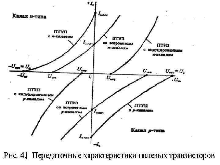 Применяют два вида полевых транзисторов: с управляющим р-n-переходом ПТУП 1 каналом n типа с изолированным затвором ПТИЗ p типа 2 встроенным каналом 2 каналом р типа 1 встроенным каналом n типа 3 индуцированным каналом p типа 4 индуцированным каналом n типа
