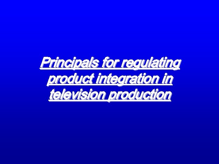 Principals for regulating product integration in television production