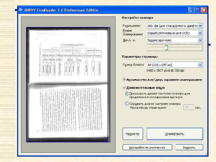 w w w На вкладке СКАНИРОВАТЬ/ОТКРЫТЬ определяются общие опции автоматической обработки документа, а также опции предобработки изображений при сканировании и открытии документов, такие как: производить или нет автоматический анализ страниц документа (автоматически определять области и их типы); выполнять ли автоматическое конвертирование изображений страниц; выполнять ли автоматическую предобработку изображений; следует ли автоматически определять ориентацию страниц; разбивать ли сдвоенные страницы. .