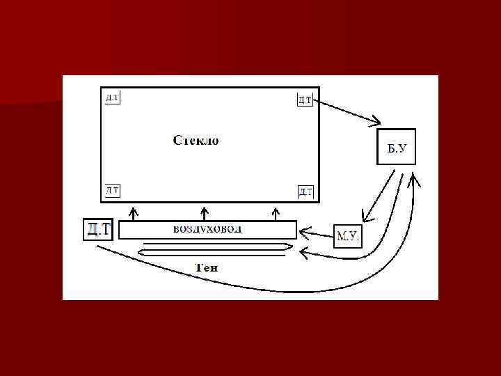 Д. Т. – датчик температуры М. У. – механическое устройство регулировки потока воздуха Б. У. - блок управления