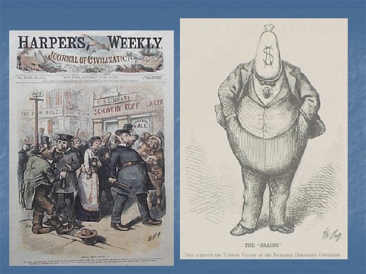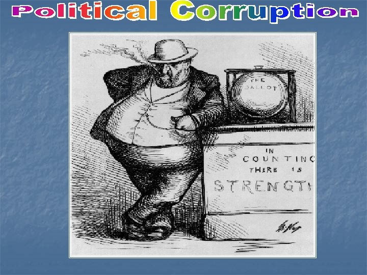 The Role of the Political Boss • May serve as mayor he: • controls city jobs, business licenses • influences courts, municipal agencies • arranges building projects, community services • Bosses paid by businesses, get voters’ loyalty, extend influence Immigrants and the Machine • Many captains, bosses 1 st or 2 nd generation Americans • Machines help immigrants with naturalization, jobs, housing Election Fraud and Graft • Machines use electoral fraud to win elections • Graft—illegal use of political influence for personal gain Graft • Machines take kickbacks, bribes to allow legal, illegal activities