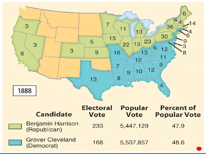 Ma…Ma… Where’s my Pa? Gone to Washington ha. . Ha. • Pivotal election came down to NY • Blaine’s Blunder- failed to Repudiate a Republican clergymen who referred to the Democrats as the party of “Rum, Romanism, and Rebellion”- cost Blaine Irish votes in NY • Cleveland won NY by @1000 votes • Cleveland -1 st Democratic President since Buchanan (1856)