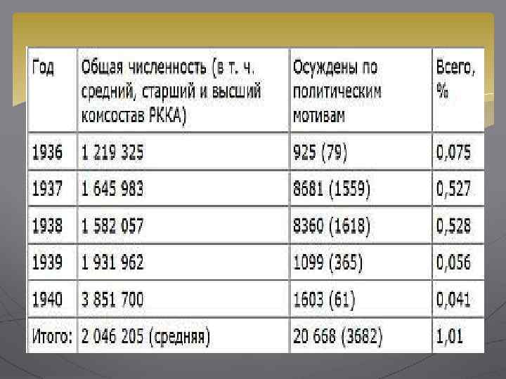 Убийство Кирова «Ленинград ское дело» Чистка в армии Причинами репрессий стало Устрашение населения страны. Мнительность Сталина, страх перед однопартийцами.