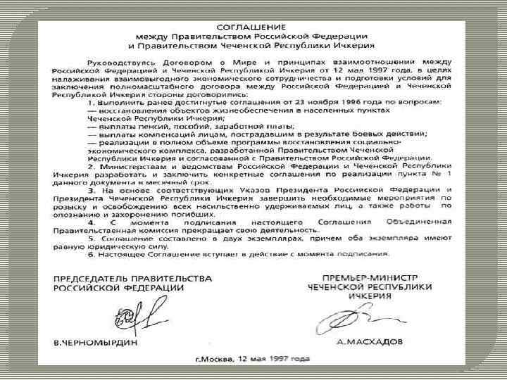 1996 г. – Хасавюртовские соглашения