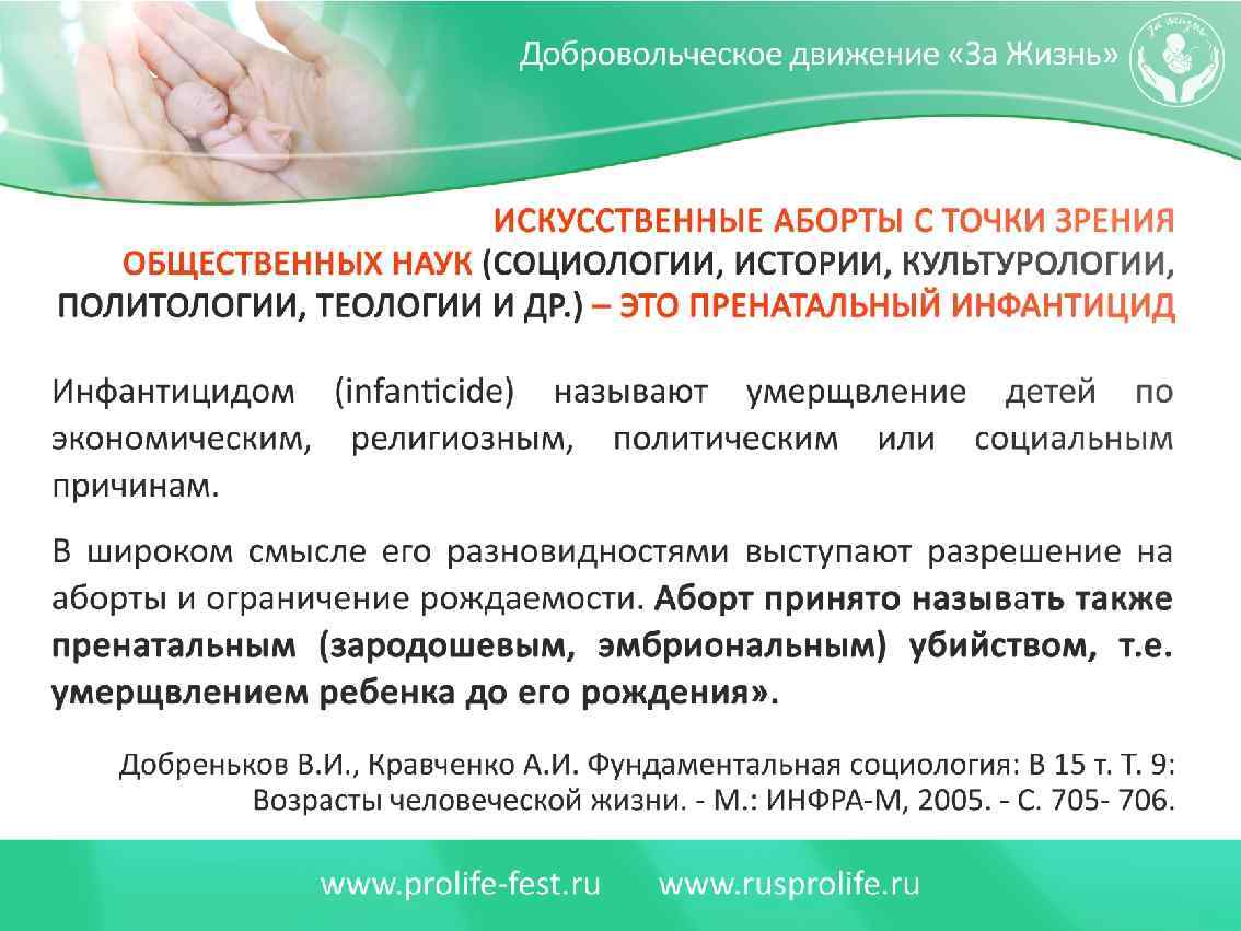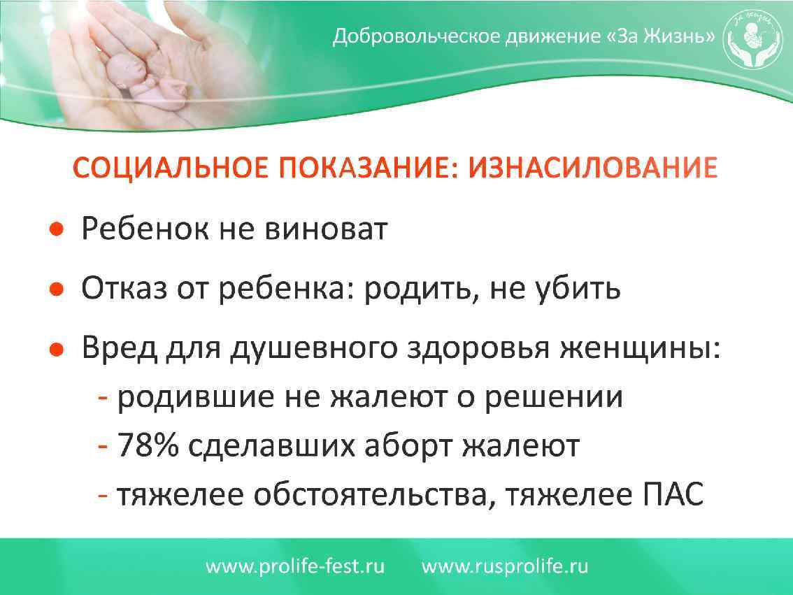 Последствия запрета абортов наш ответ (работа со страхами представителей власти) 3. Государство совместно с общественными организациями, РПЦ, и др. религиозными конфессиями при разумной социальной политики справится с любым количеством новорожденных, История России и СССР тому свидетельствует. 4. Авторитет и поддержка здравомыслящим народом власти только возрастет и усилится, а нравственный авторитет РПЦ, благодаря ее принципиальной и последовательной позиции и развитию социального служения только возрастет. 5. При соответствующих, государственных управленческих решениях криминальные аборты будут минимизированы. Количество опасных абортов и смертность женщин просто преувеличены.
