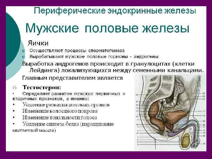 Мужские половые органы • Мужские половые органы предназначены для созревания мужских половых клеток (сперматозоидов), выведения их в составе семенной жидкости (спермы) и образования мужских половых гормонов (андрогенов).